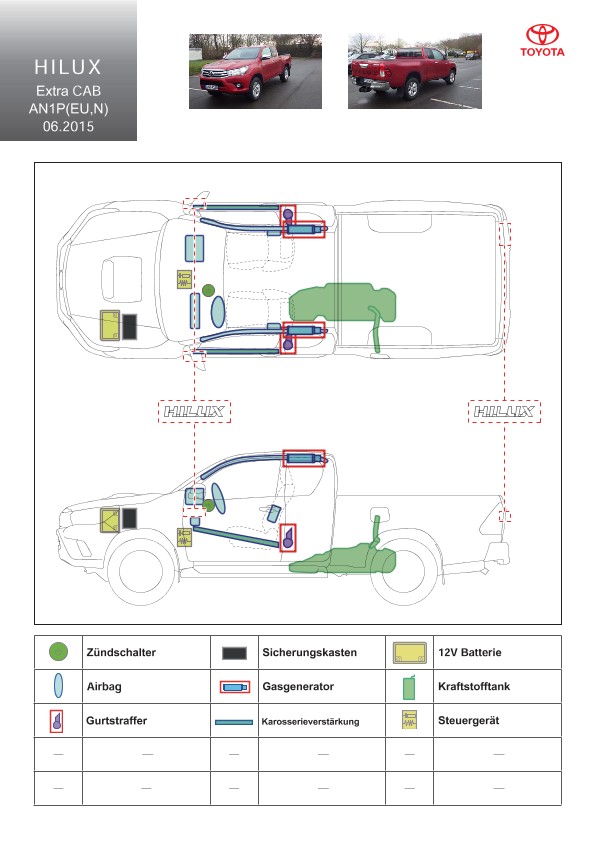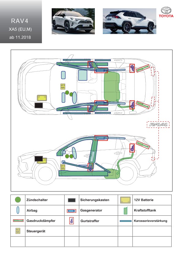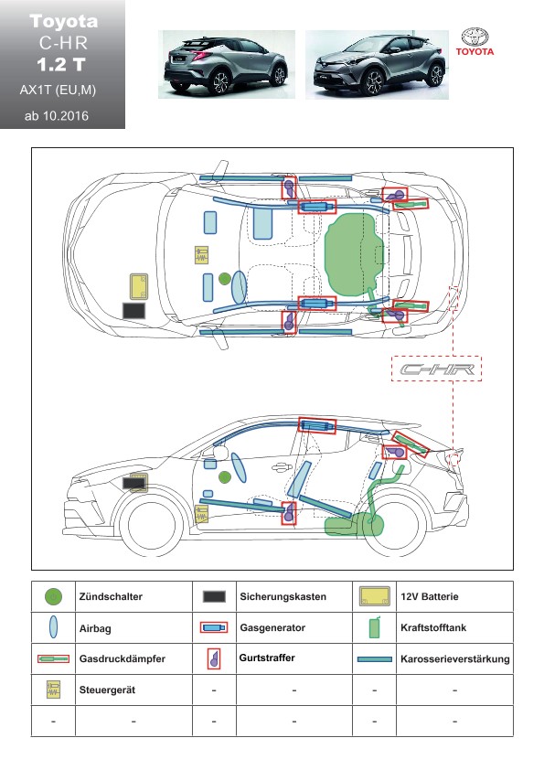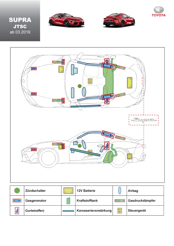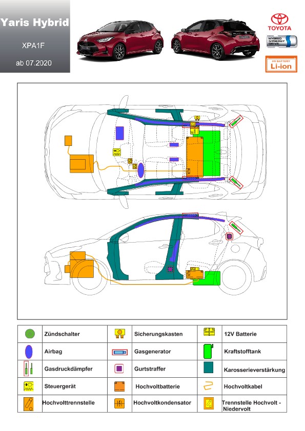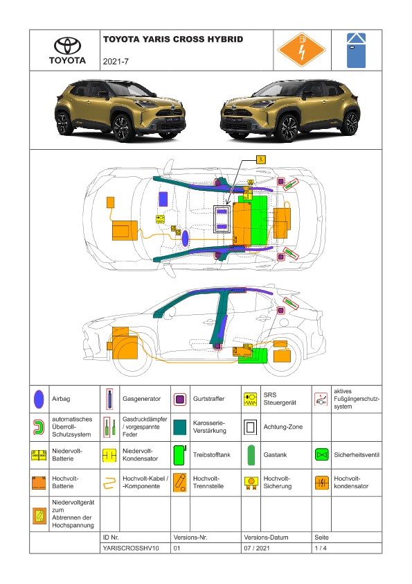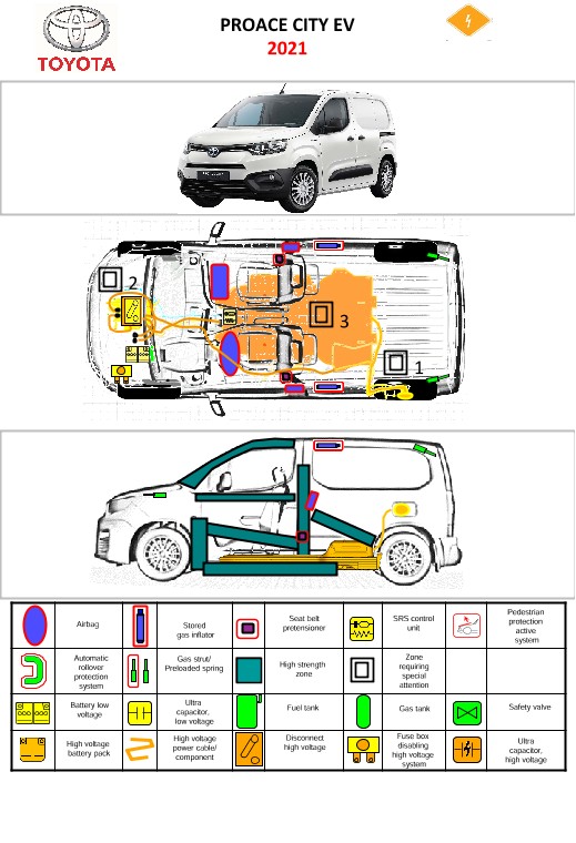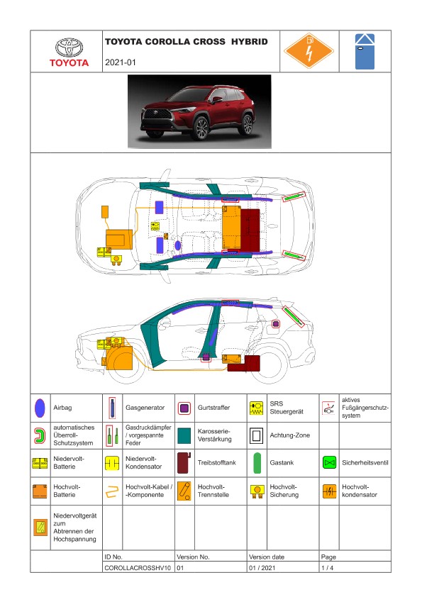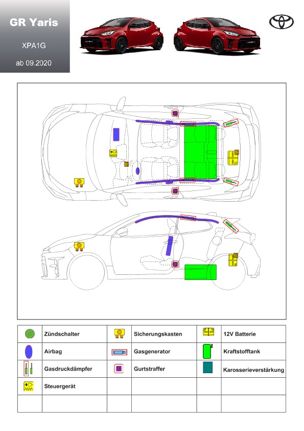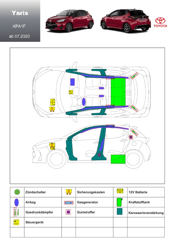 Remarque d’ordre juridique: toutes les informations contenues dans les documents sont valables au moment de l’élaboration de ces derniers. Toyota se réserve le droit de procéder à des modifications sans préavis. Le contenu des fiches techniques de sauvetage est exclusivement réservé aux membres professionnels des services de secours à des fins de désincarcération.