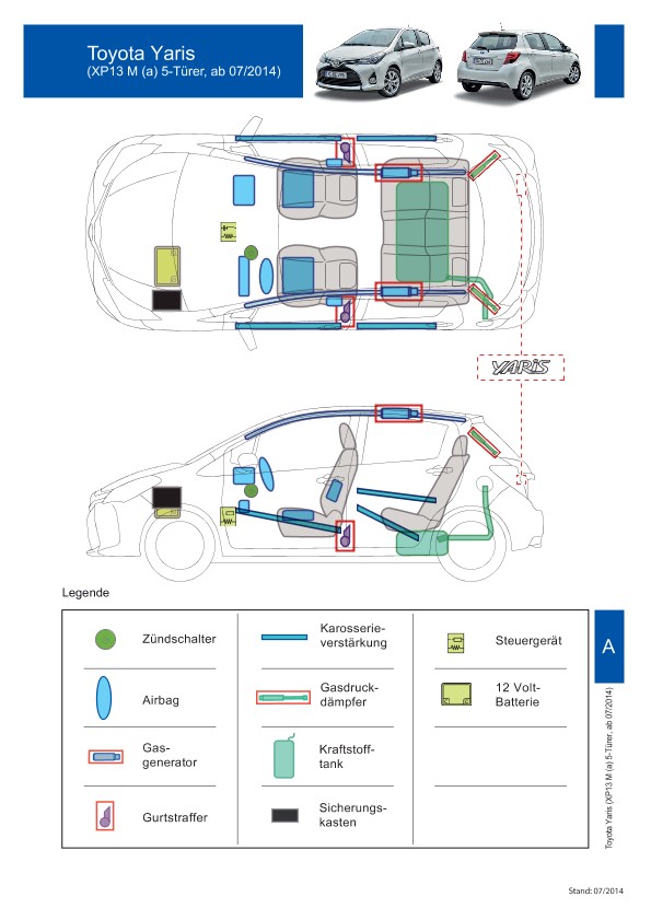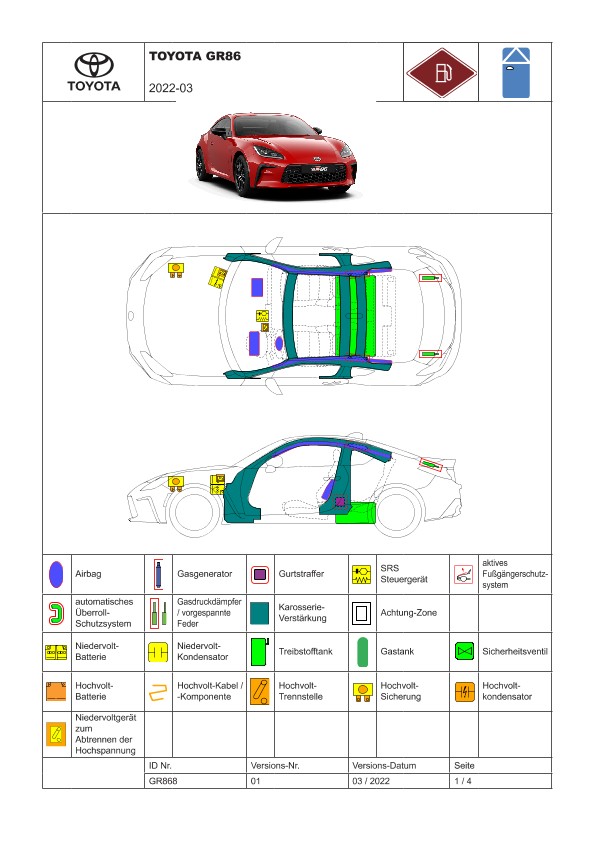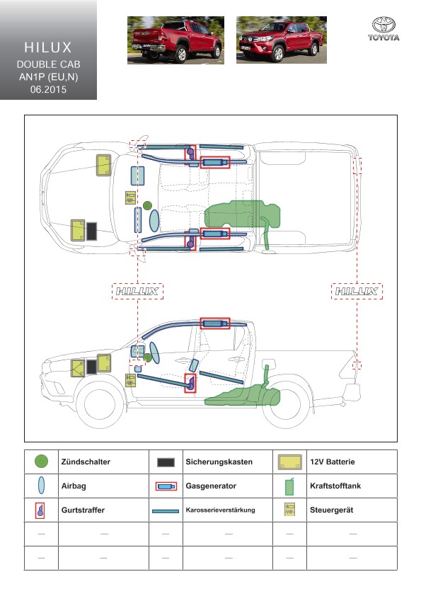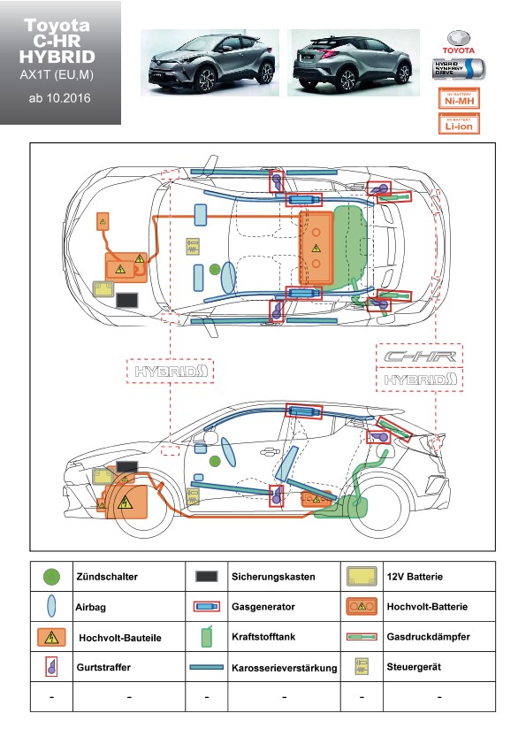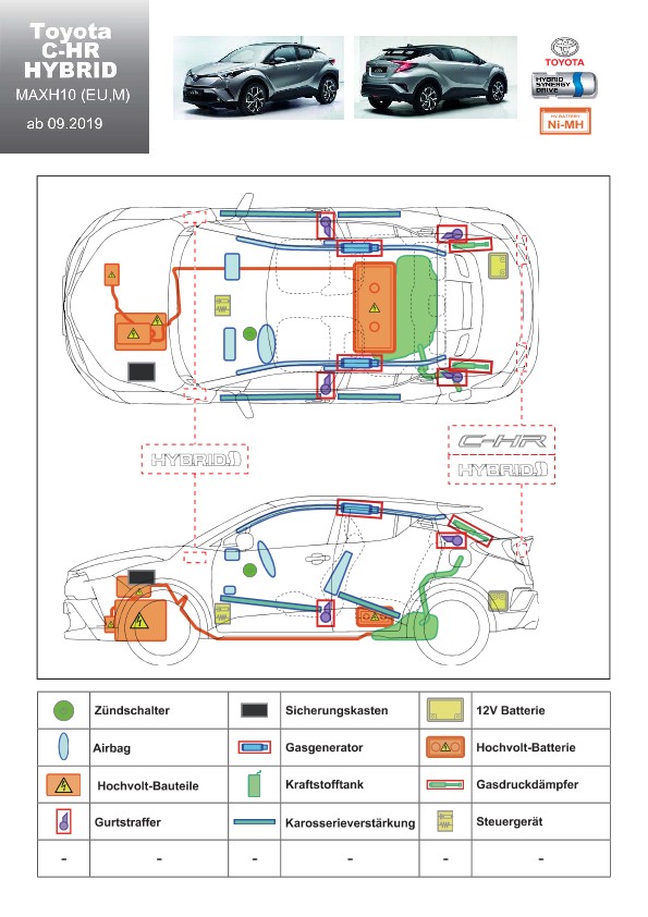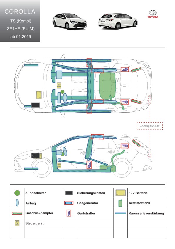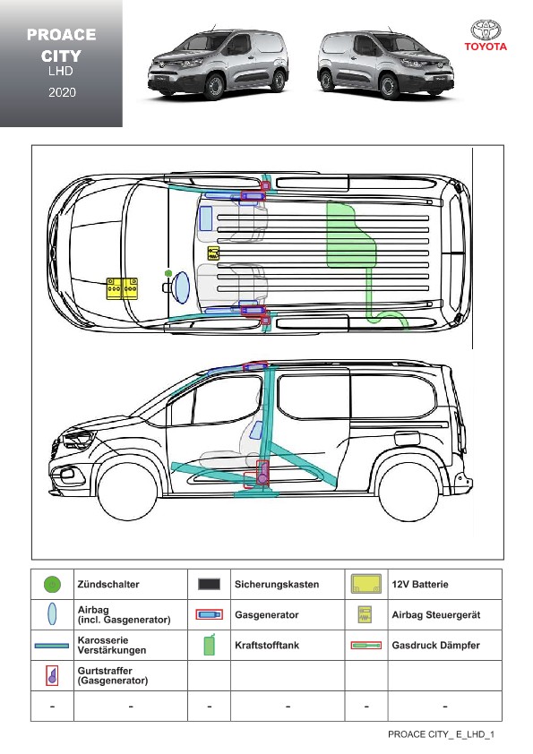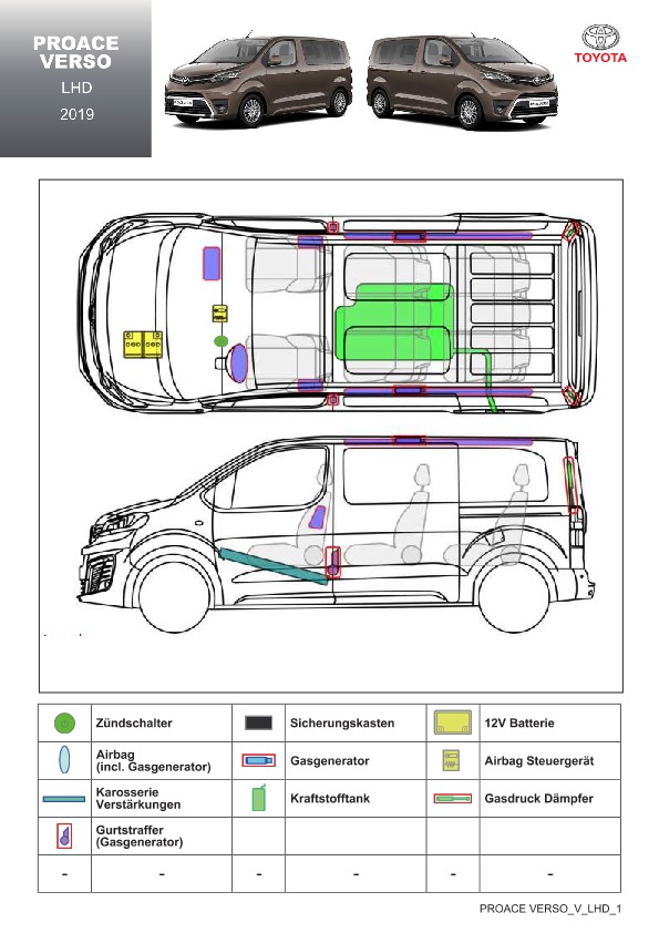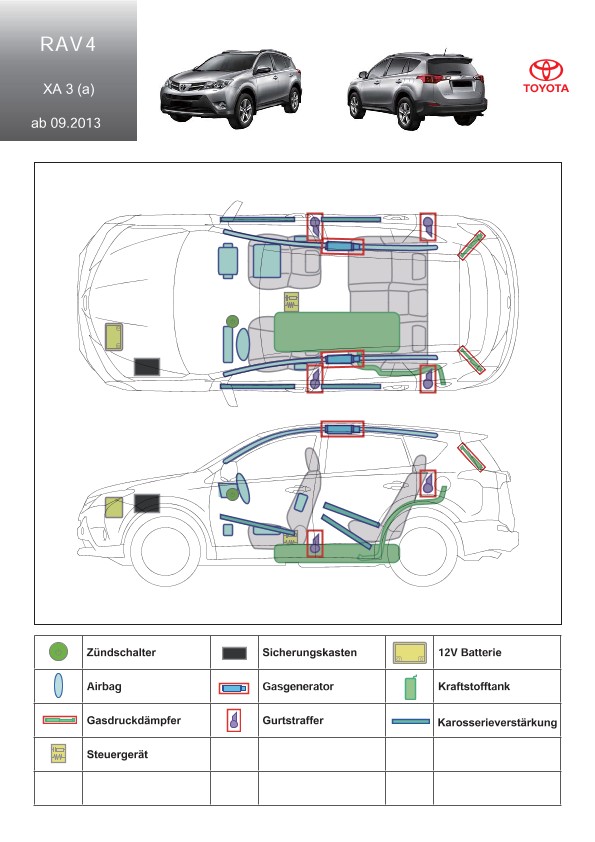 Remarque d’ordre juridique: toutes les informations contenues dans les documents sont valables au moment de l’élaboration de ces derniers. Toyota se réserve le droit de procéder à des modifications sans préavis. Le contenu des fiches techniques de sauvetage est exclusivement réservé aux membres professionnels des services de secours à des fins de désincarcération.