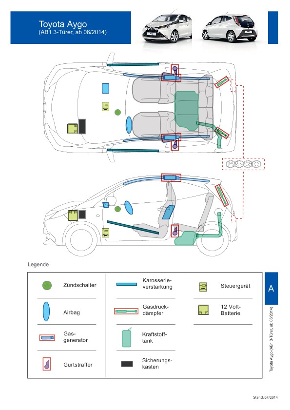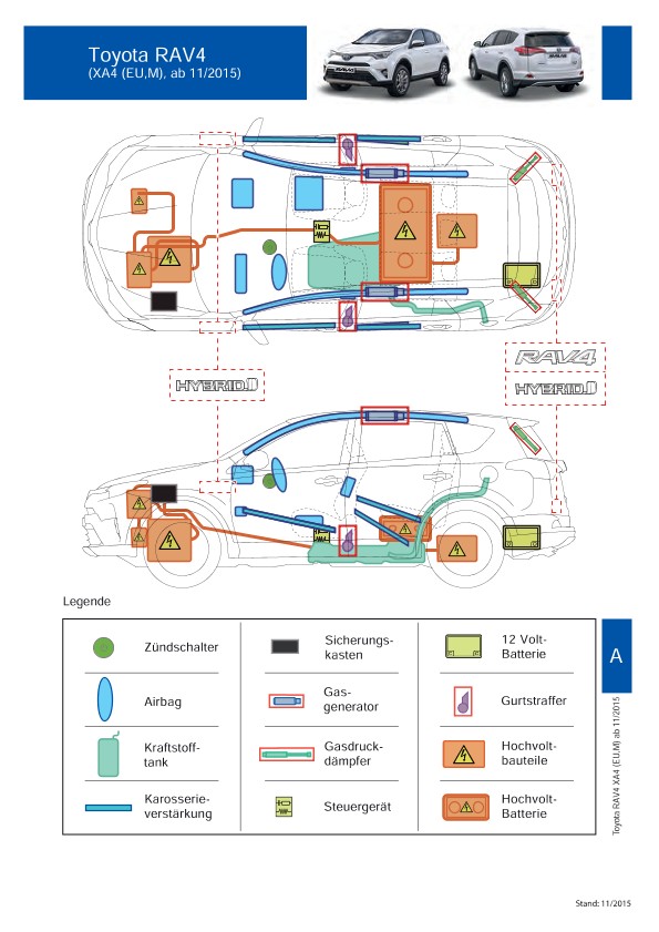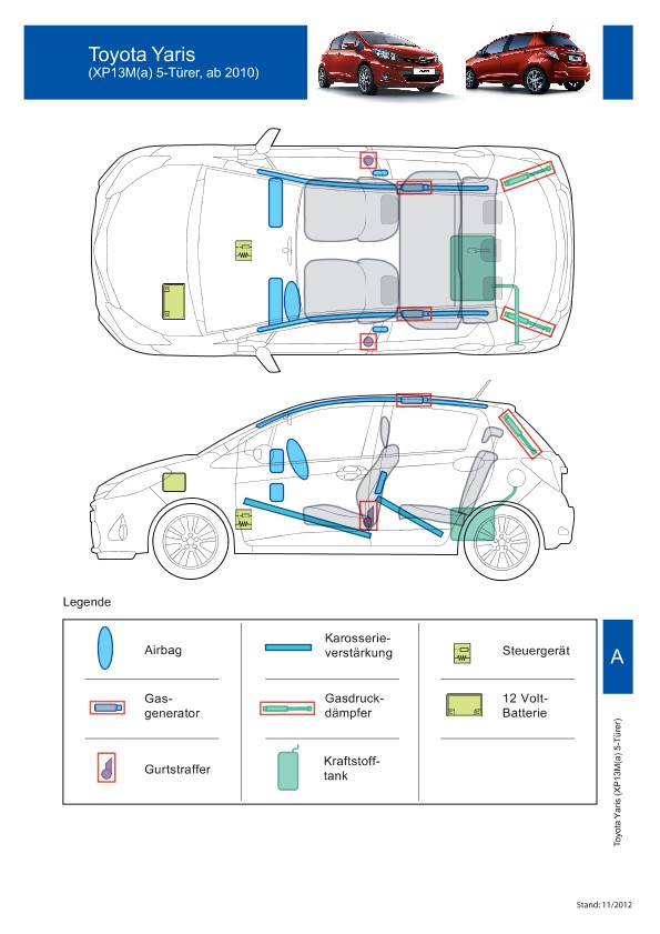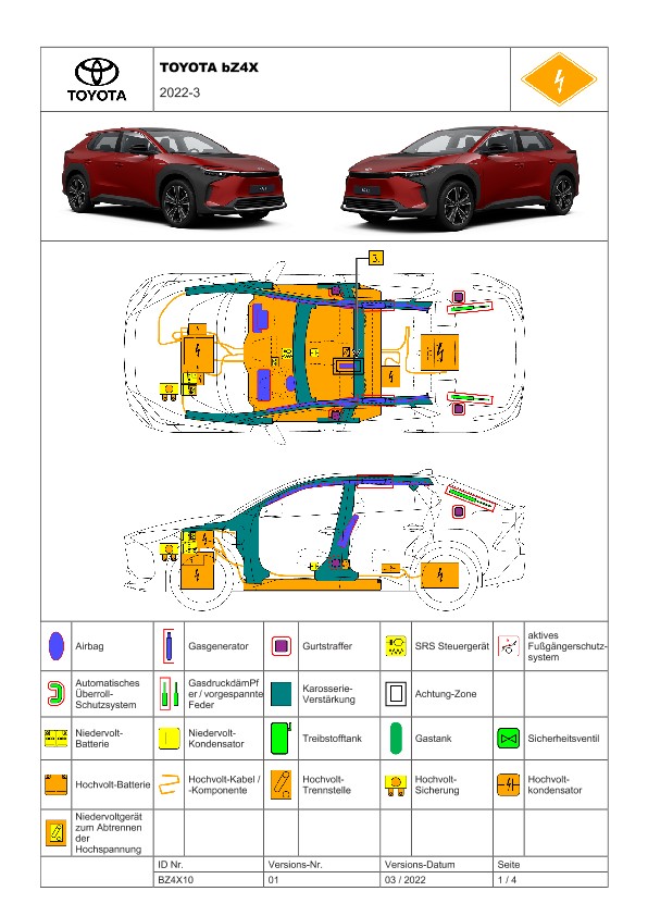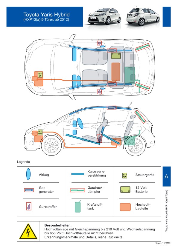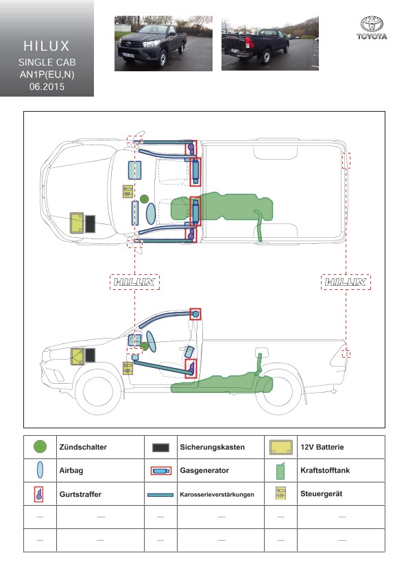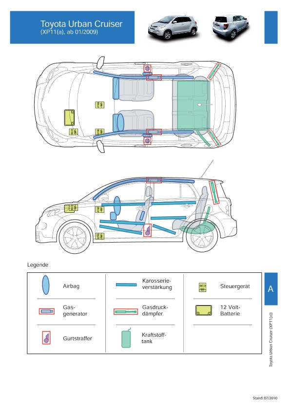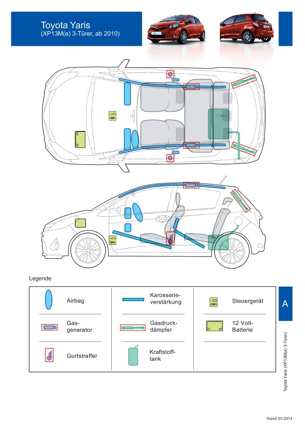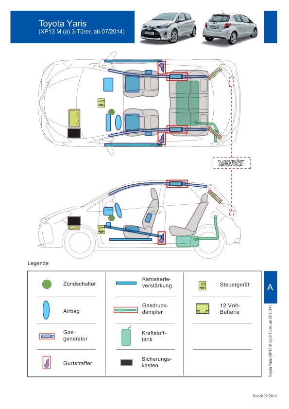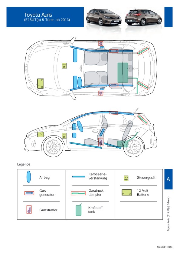 Remarque d’ordre juridique: toutes les informations contenues dans les documents sont valables au moment de l’élaboration de ces derniers. Toyota se réserve le droit de procéder à des modifications sans préavis. Le contenu des fiches techniques de sauvetage est exclusivement réservé aux membres professionnels des services de secours à des fins de désincarcération.