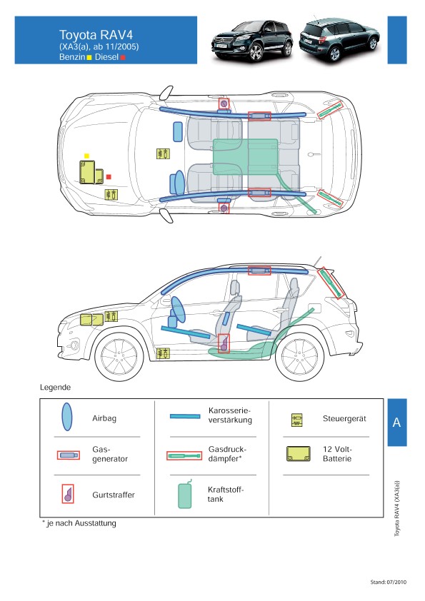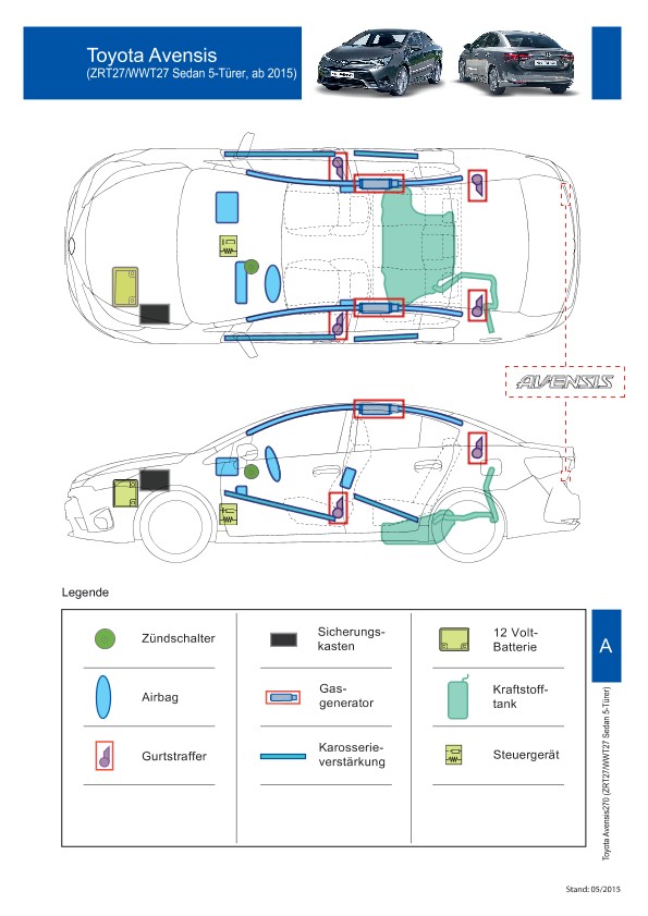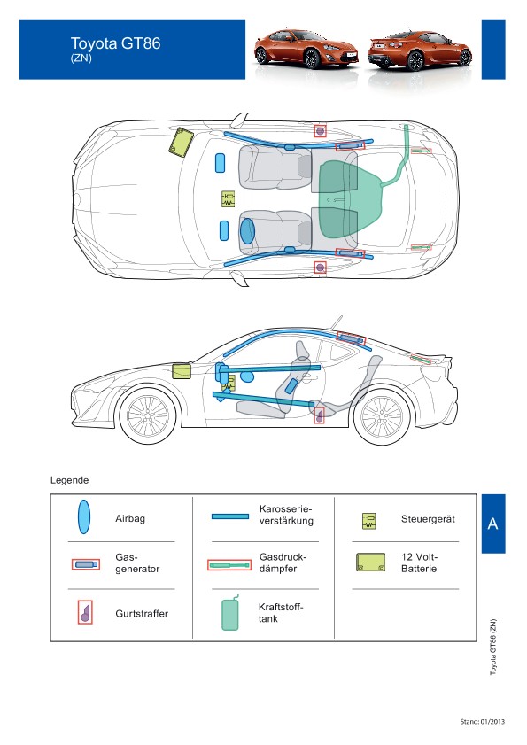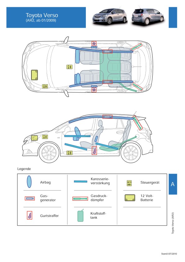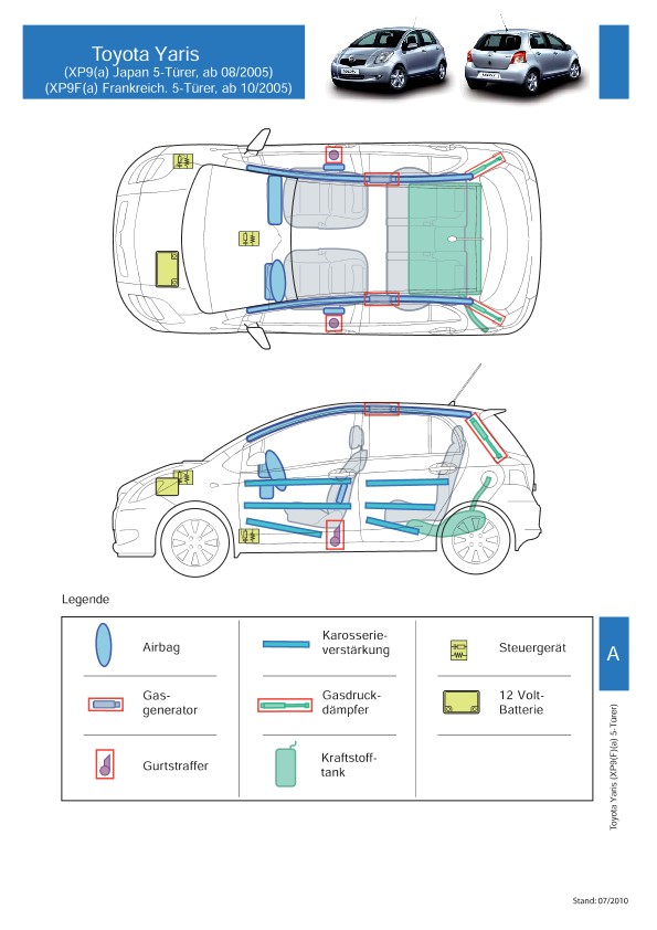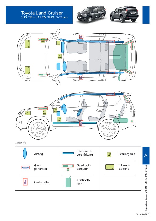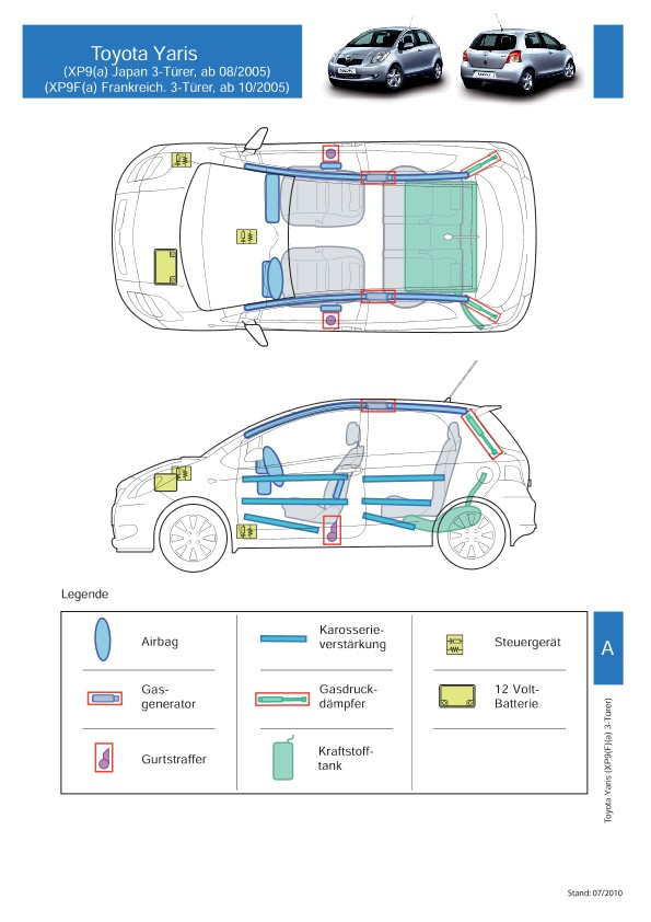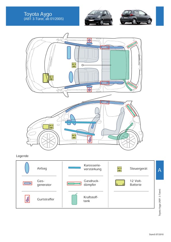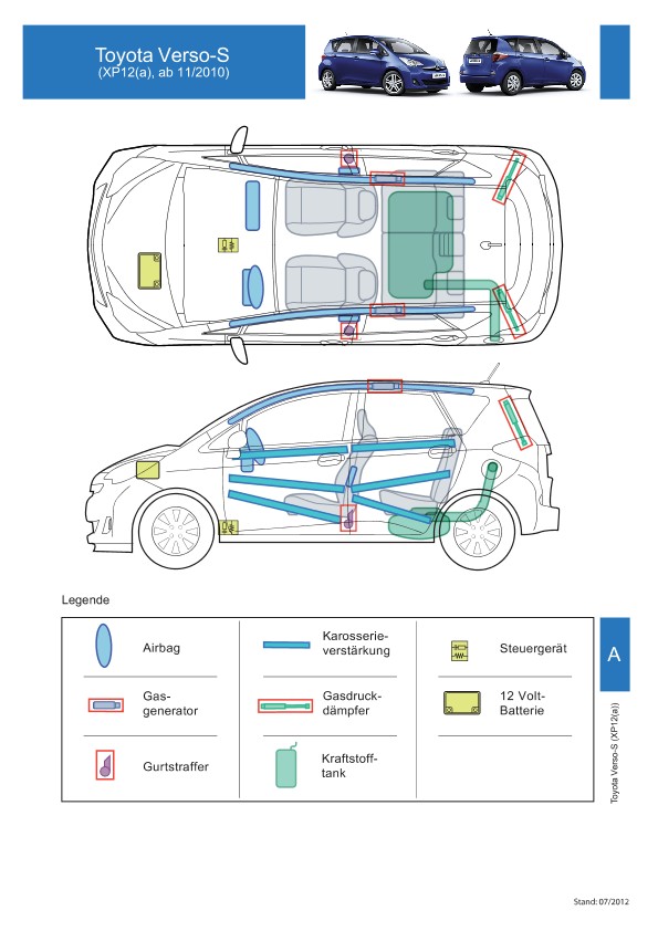 Remarque d’ordre juridique: toutes les informations contenues dans les documents sont valables au moment de l’élaboration de ces derniers. Toyota se réserve le droit de procéder à des modifications sans préavis. Le contenu des fiches techniques de sauvetage est exclusivement réservé aux membres professionnels des services de secours à des fins de désincarcération.