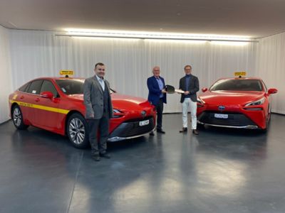 - La deuxième génération de la Toyota Mirai, modèle à pile à combustible hydrogène, a été remise à Herold Taxi dans les locaux d’Emil Frey AG à Saint-Gall